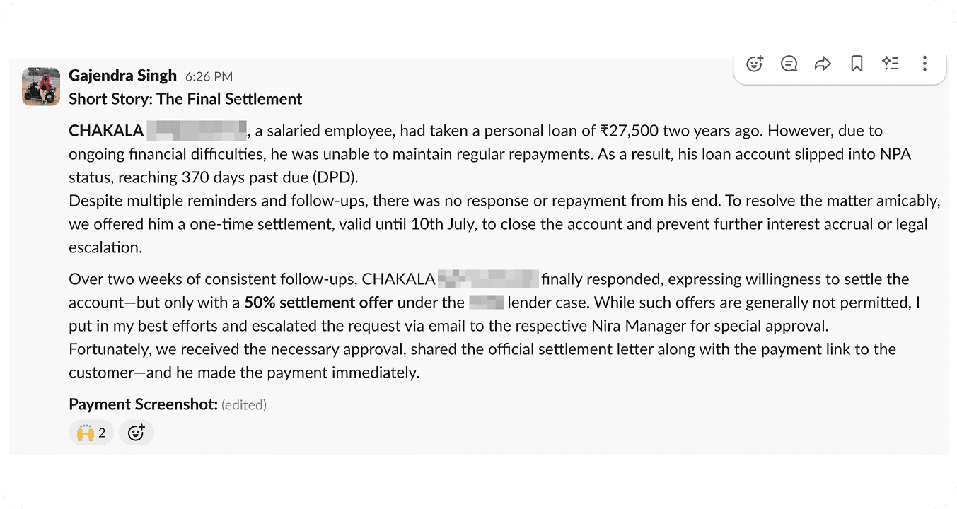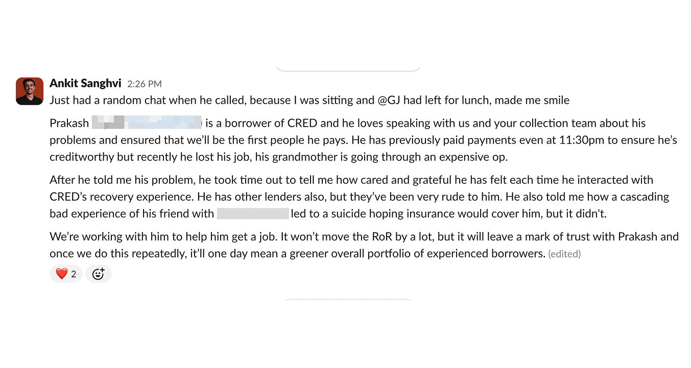 Our approach doesn’t just nudge borrowers to pay, but it involves understanding each borrower’s POV, building trust, and helping them genuinely improve their place in the credit ecosystem.